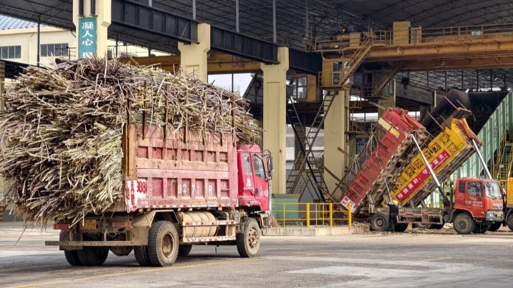 黄安基地里,满载甘蔗的卡车沿着宽阔道路,驶向附近的来宾东糖凤凰有限公司。在这里,甘蔗开启蜕变之旅——经过全自动生产线的精准处理,清洗、压榨、煮炼、结晶,最终化作蔗糖产品走进千家万户。公司党委书记罗斌介绍,近两年,公司投入超过两亿元进行技术改造,其中最关键的突破是引入了AI煮糖系统,“每吨白糖的生产所带来的成本较上年降低了近600元,出糖率还提升了”。