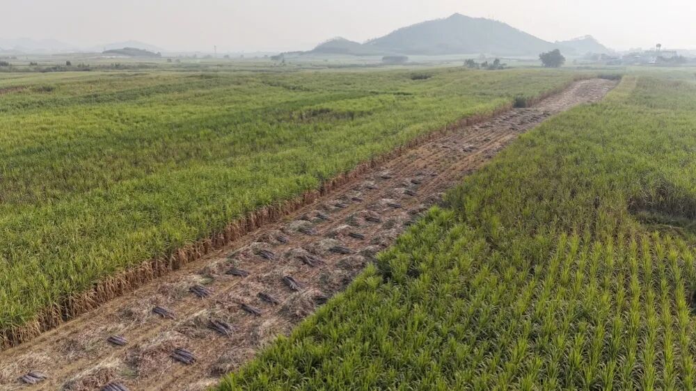 面对当地起伏的丘陵地形,余才库还有更精细的考量。合作社专门引进了适合坡地作业的分布式收割机,让机械化覆盖到每一个角落,眼下接到的订单量已有2万吨。田间短暂歇脚后,余才库抹了抹额头上的汗,转身又登上了驾驶座——榨季抢收的每一刻都珍贵,时间不等人。