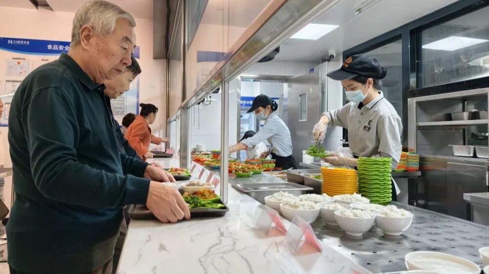 临近中午,社区参与共建的“DK国营食堂”热闹起来。这天提供的餐食有肉末土豆条、京葱豆腐、莲藕炒肉等,窗口上方菜单清晰,后厨明净亮堂。与社区共建挂牌以来,这家由国企运营的长者食堂已累计为173位老人办理了用餐卡。